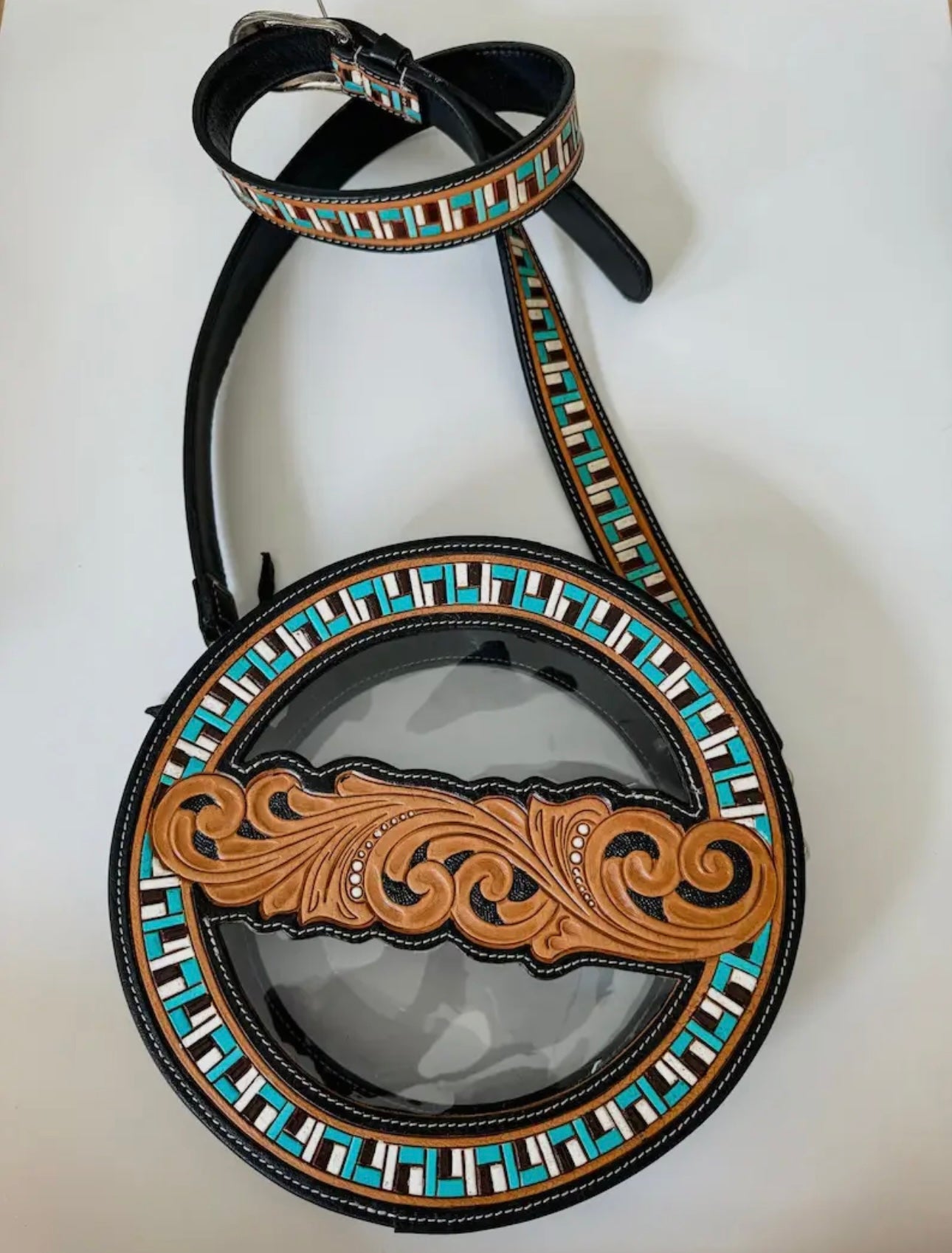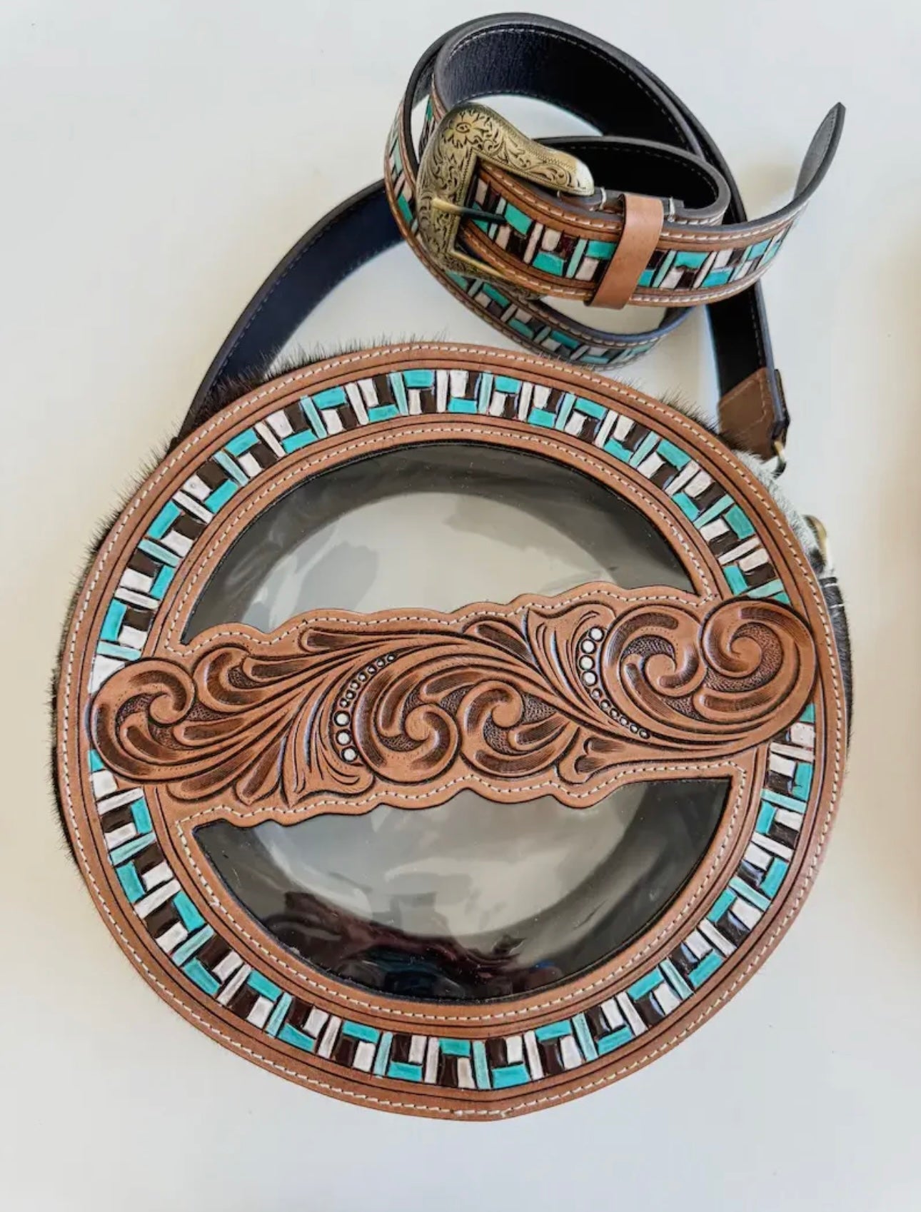 Say howdy to your new go-to game day, concert, and rodeo sidekick 🤠. This circle crossbody blends western tradition with modern must-haves — featuring tooled leather details, turquoise inlays, and a sturdy clear front (stadium & event approved).