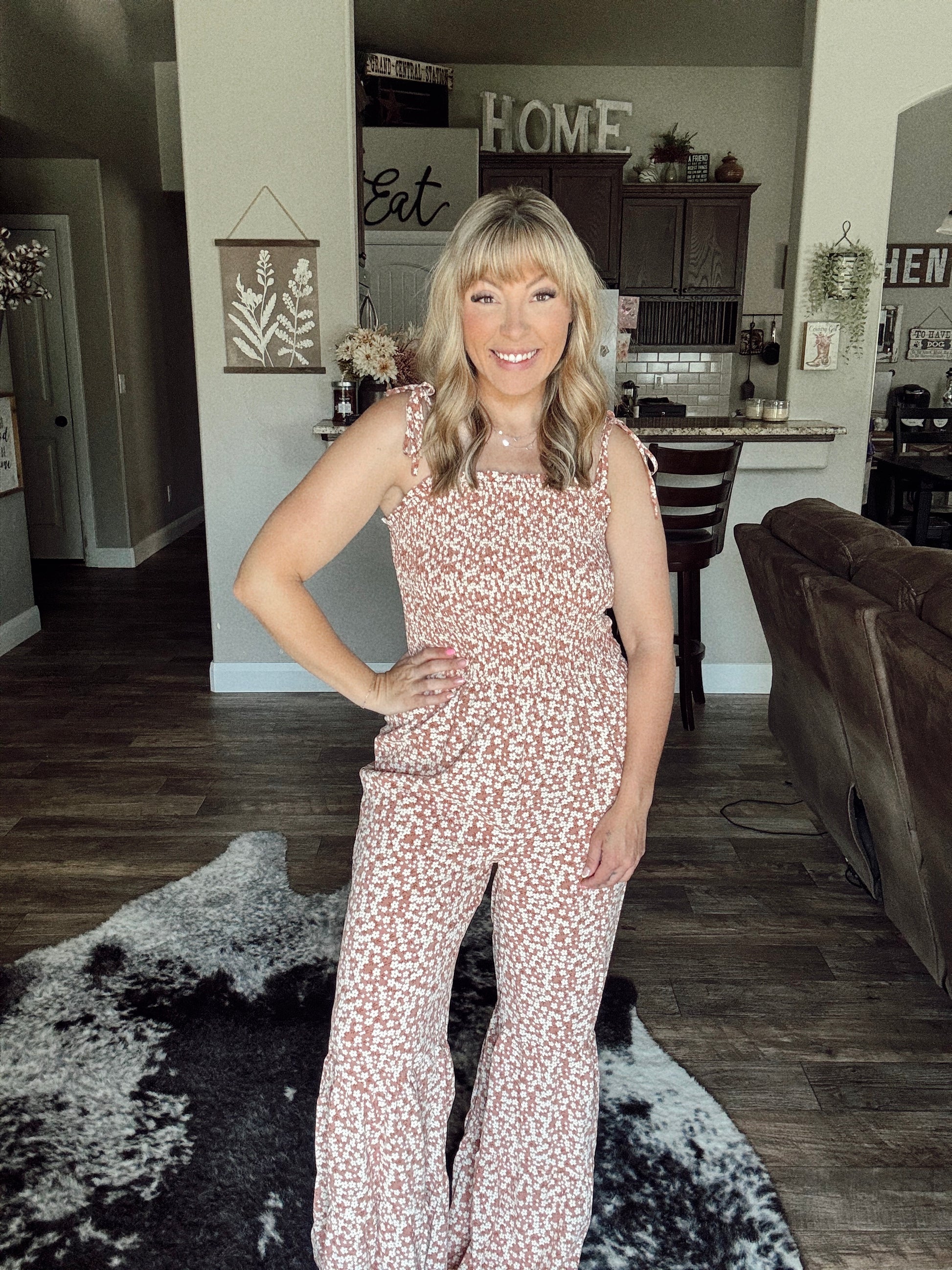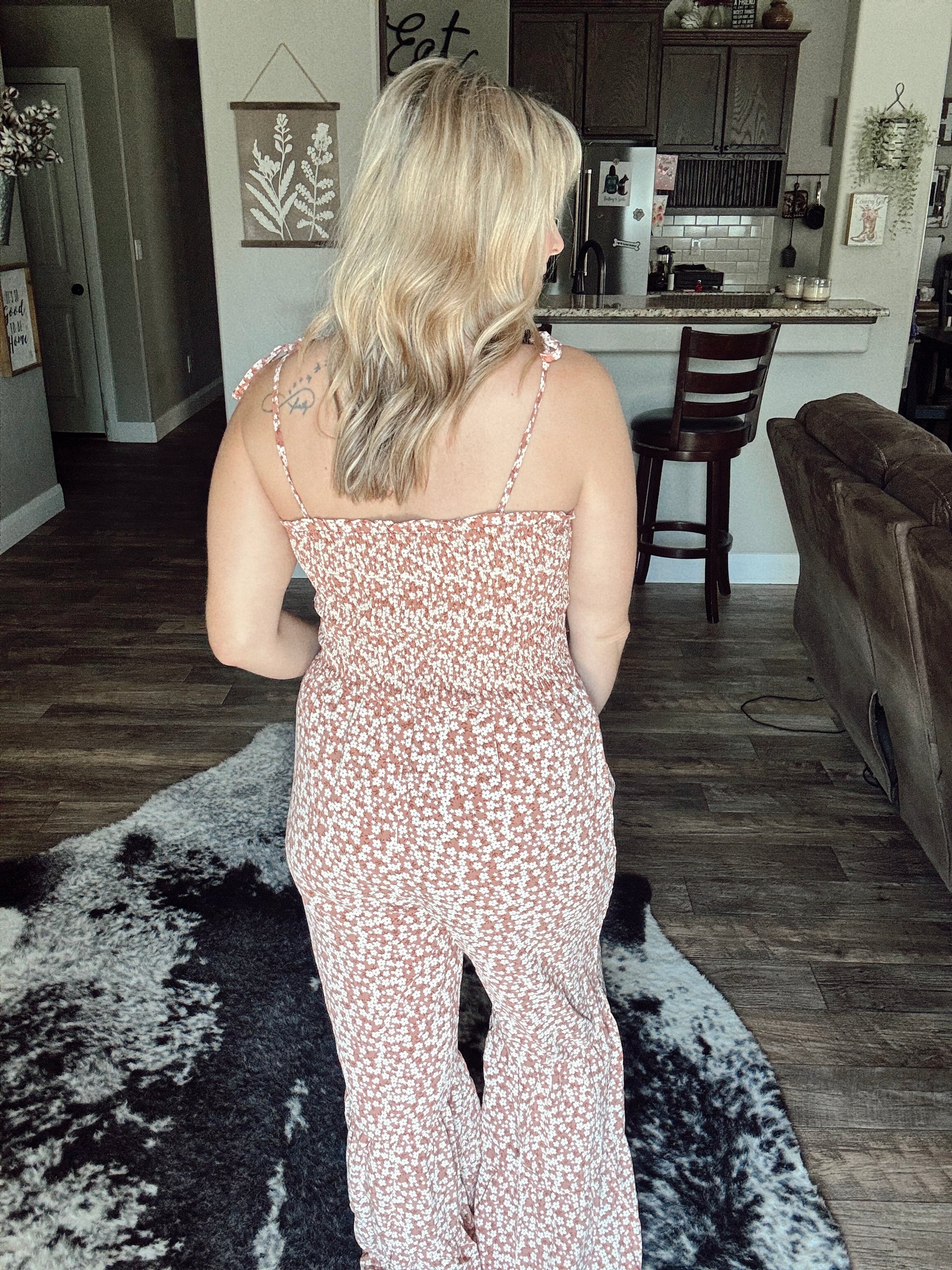 Step into effortless charm with this floral jumpsuit! Featuring a stretchy, fitted bodice, tie-up shoulder straps, and flowy wide legs with a flared finish, this piece is comfy and cute. The soft peachy print gives major summertime sweetness—perfect for brunch dates, patio hangs, or just feelin’ yourself.